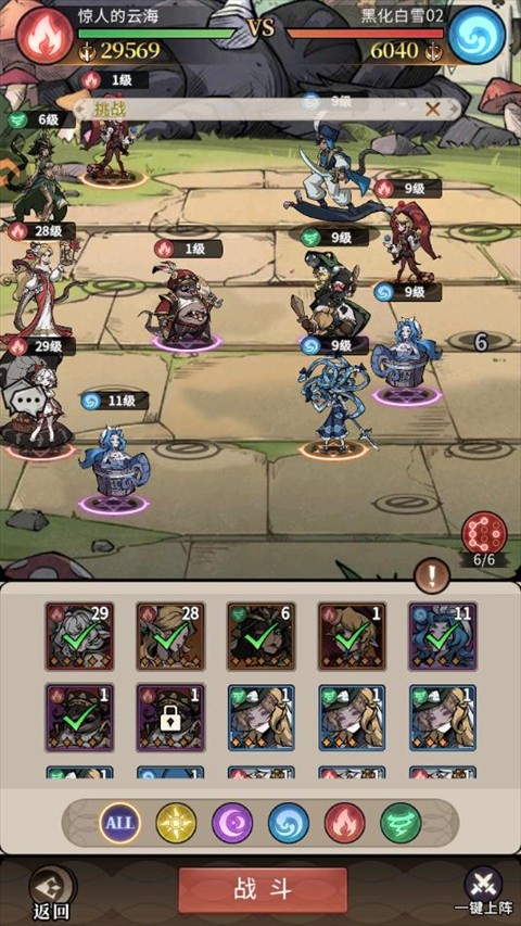 3、通过羁绊获得战斗加成,游戏拥有升级、升星等深度养成系统。