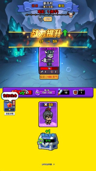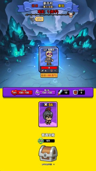 1、进入游戏后,选择卡牌收集角色,开启宝箱恢复生命值,同时熟悉每个角色的属性和技能。