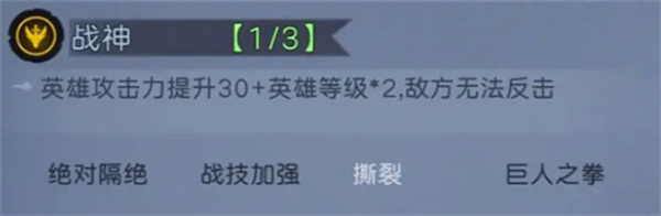 - 战神羁绊(显著提高攻击力并限制敌方反击)