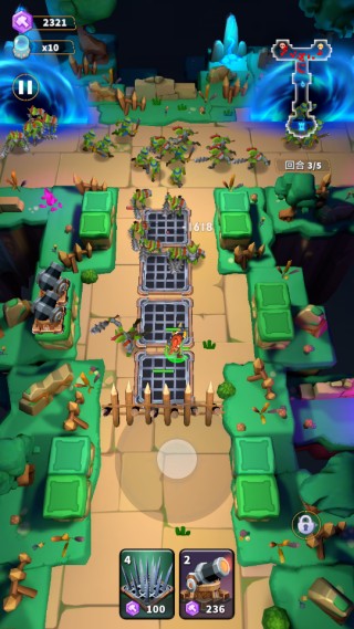 3、合理放置地刺和炮台,射击敌人,保卫水晶的安全。