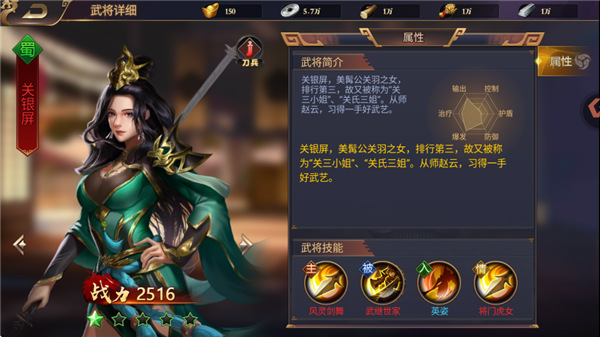 关银屏,关羽的义女,排行老三,所以也称“关三小姐”、“关氏三姐”。师从赵云,学会了一身武艺。