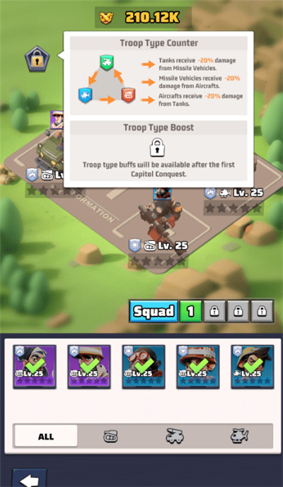 1、坦克克制导弹车:坦克对导弹车造成额外20%的伤害,并减少自身受到20%的伤害。