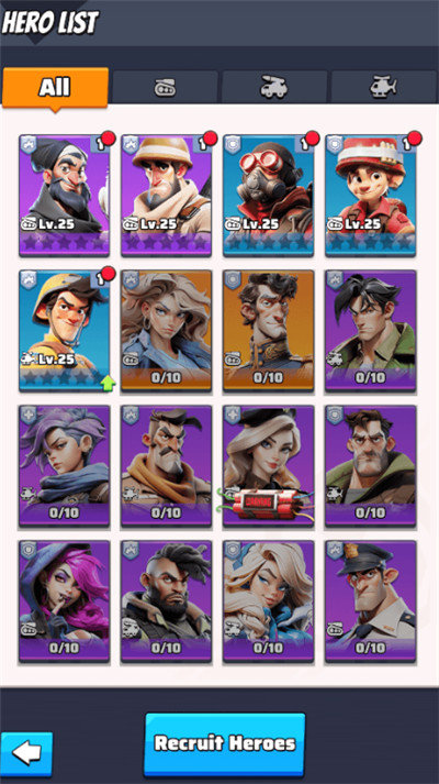 7、通关后,你可以获得丰富的资源,点击主界面下方的英雄,可以使用资源对角色进行升级。