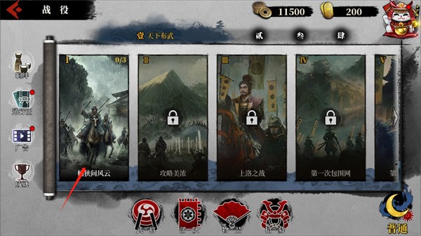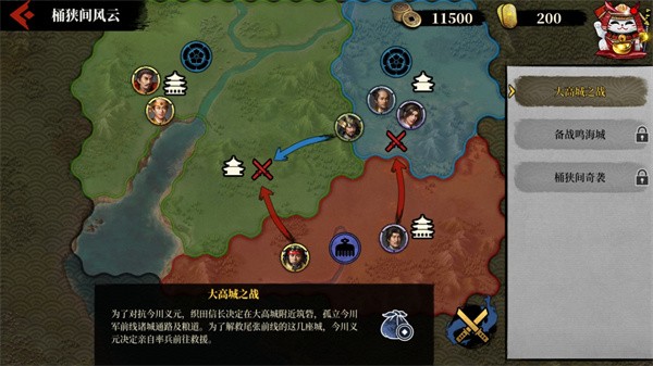 游戏包含16个章节,超过200场著名的历史战役,如“桶狭间风云”、“攻略美浓”、“天下布武”等,重现日本战国的乱世风云。