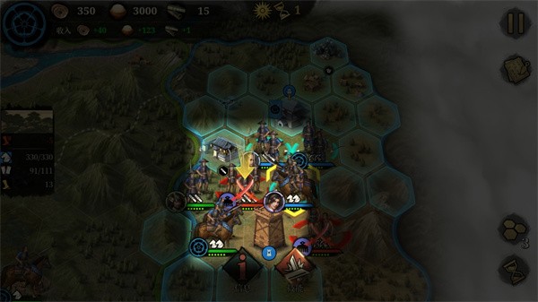 8、进入战役后,蓝色区域是玩家控制的部队,点击它们可以看到移动范围和攻击目标;