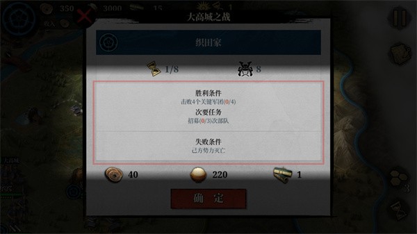 7、游戏会展示主要胜利条件和次要目标,主要胜利条件对游戏的胜利至关重要,而次要条件虽不影响胜利,但达成后会有额外奖励。点击确定后,开始游戏;