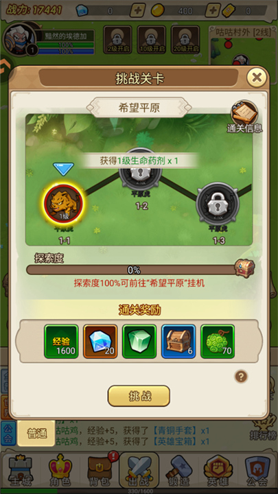 3、在挑战关卡之前,你需要击败野外的怪物来积累能量,当能量满了之后,你就可以开始挑战关卡了。