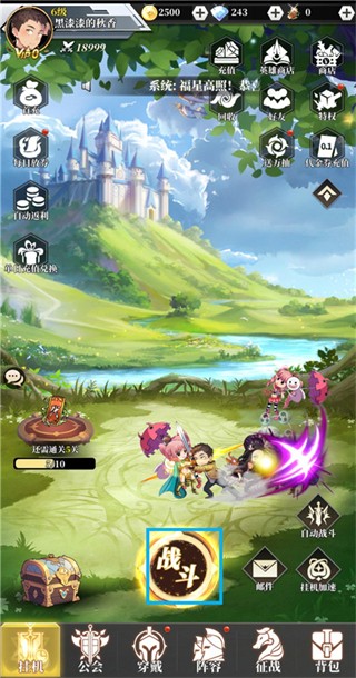 4、回到“挂机”界面,点击“战斗”开始关卡挑战。