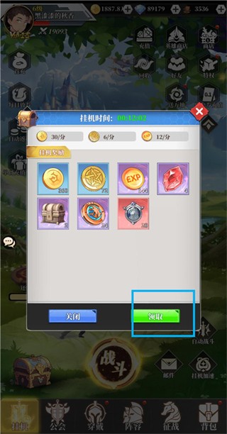 6、玩家挂机一段时间后,可以领取挂机奖励。