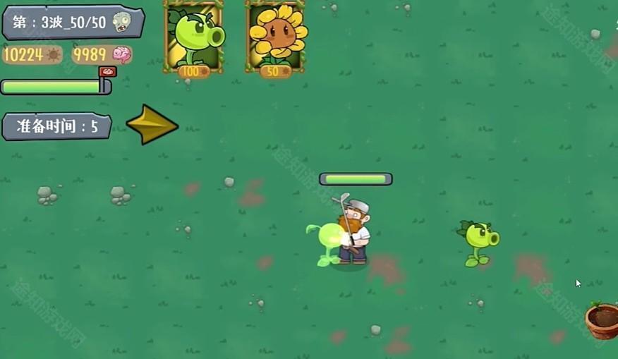 5、每一波开始之前,都有一小段准备时间,可以让戴夫种植植物