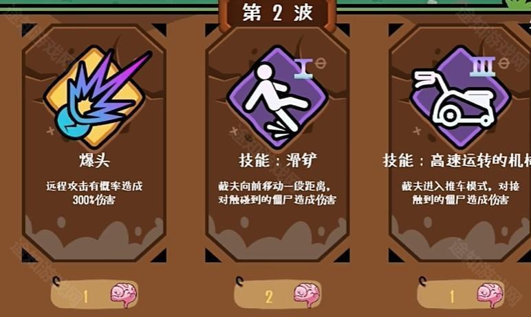 1、独特设计的升级系统,让戴夫可以消耗脑子,来选择提高自身战斗能力的卡牌