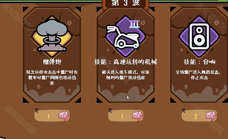 3、游戏分成一波一波的战斗形式,每打完一波僵尸呢,就会弹出戴夫的升级面板