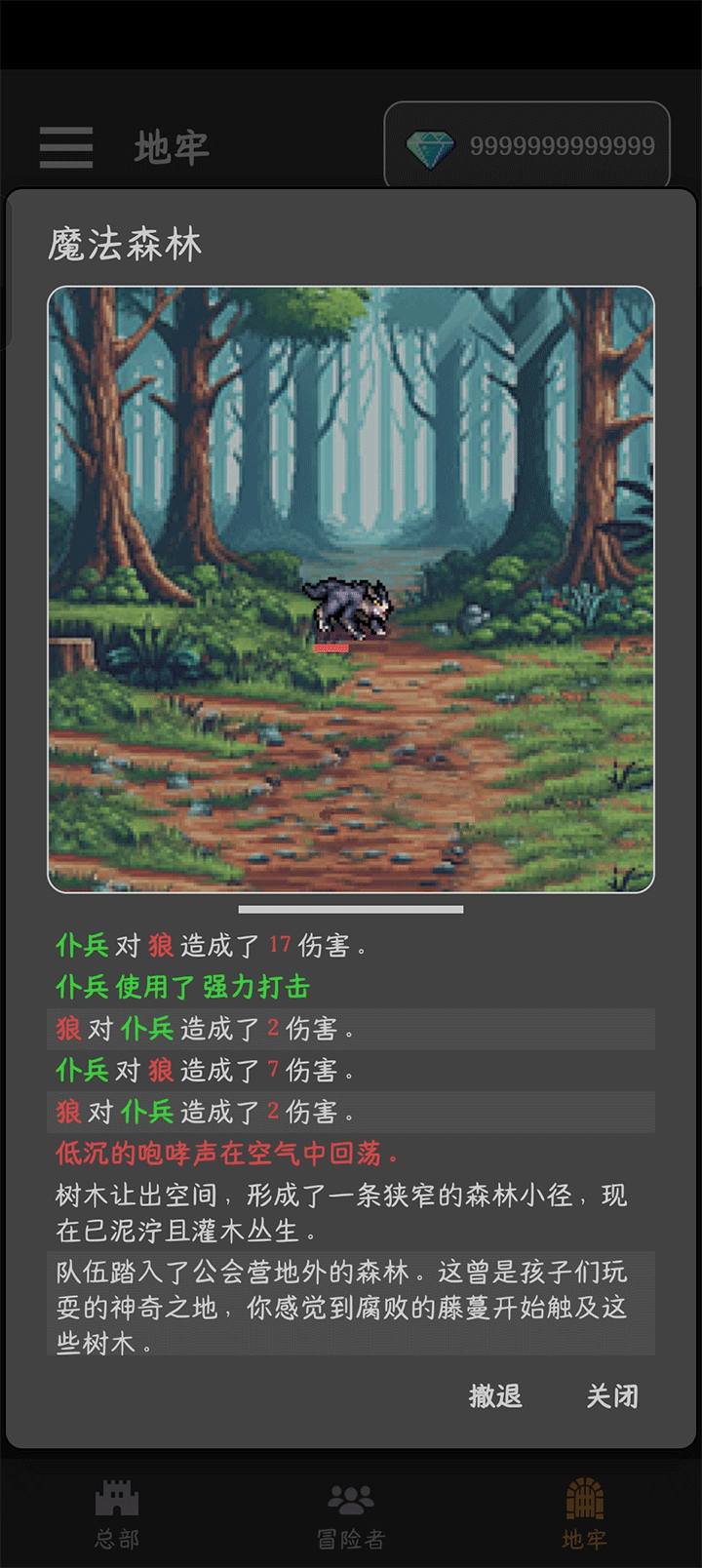 3、游戏开始冒险者们会自动进行战斗,玩家也可以选择关闭等一会来收获战利品。