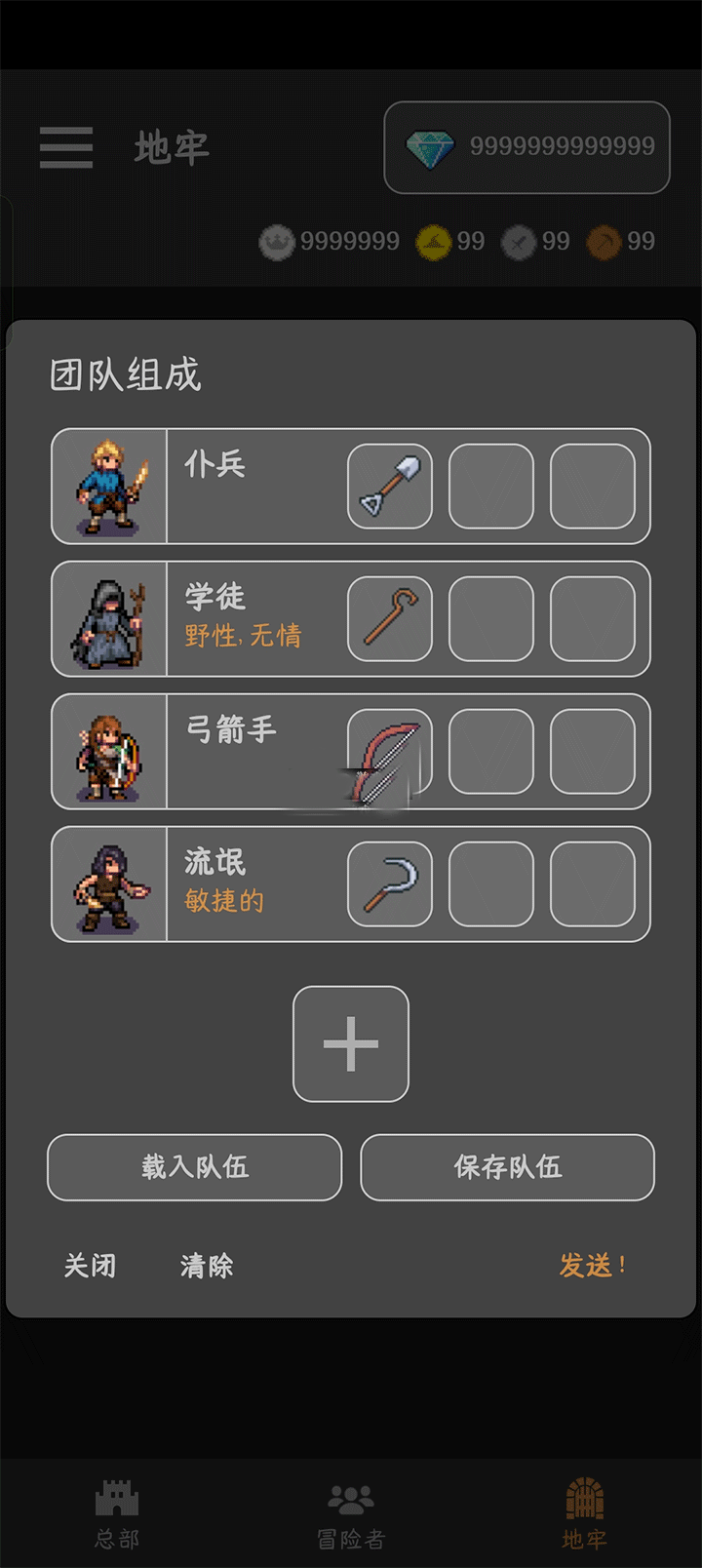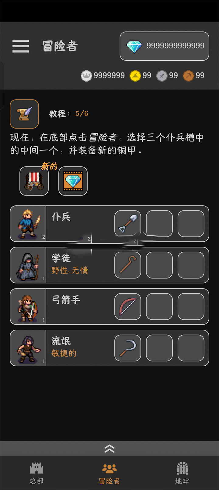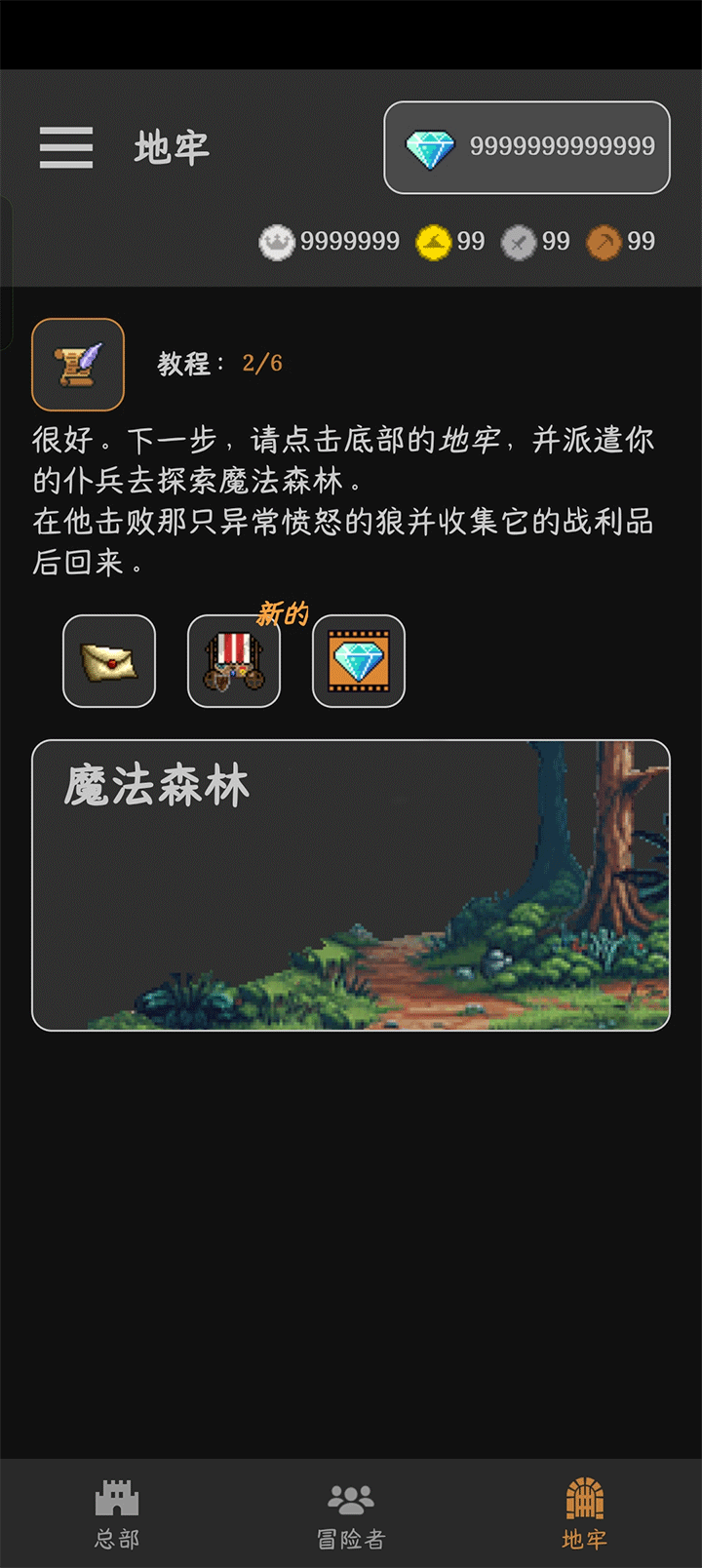 2、招募完后我们就可以点击地牢来进行探险。