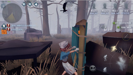 (4)乌鸦报点。当求生者长时间不行动或者经过乌鸦旁边,也会有提示,求生者头上也会出现一群“乌鸦光环”