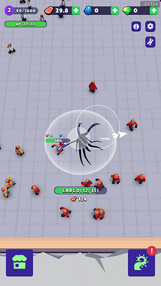 2、靠近敌人身边会迅速消耗它们的血量,杀死敌人后会把敌人装进背包。