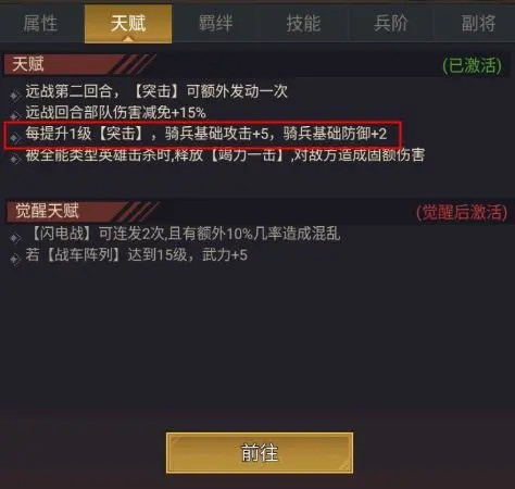 天赋:每个英雄都有独特的天赋技能,影响战斗策略。天赋有时与技能搭配效果更佳。例如,末日邮差升星时,骑兵的基础攻击和防御都会增加。