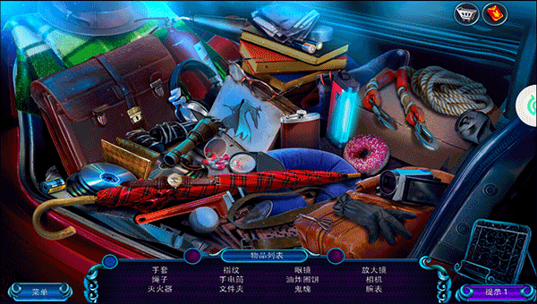 7、后备箱里有很多物品,包括手套、灭火器、指纹、手电筒、文件夹、油炸圈饼、放大镜、相机、腕表、绳子和神秘物品。最快的方法是随意点击,因为没有错误惩罚,这种方法反而最快捷;