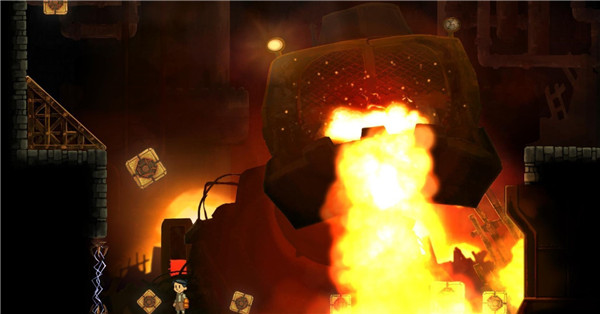 1、这场Boss战相对简单,只需我们不断向左移动,避免被履带推到右边的熔炉里;