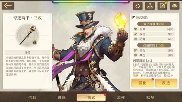 源武是角色的专属武器,强化它来提升角色属性,改造它来增强必杀技的威力。