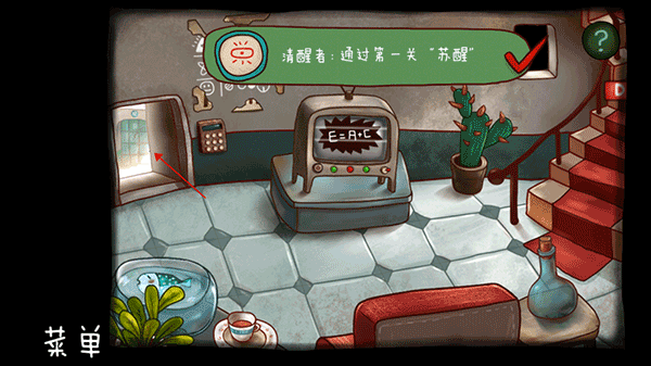 3、点击地面上的废纸,收集记忆碎片;点击床边的台灯插头,点亮台灯。