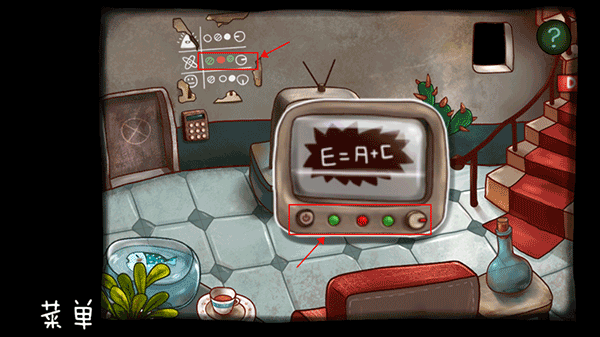 26、回到楼下,点击电视,打开电视,调整灯光,使其与墙上的排列一致,电视打开后获取信息E=A+C。