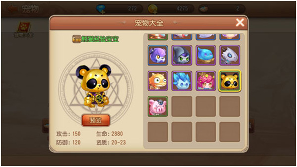 3、宠物养成,助力战斗。