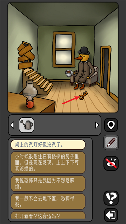 5、回到拿水壶的房间,把糖块放入咖啡,拿走地上的钥匙。