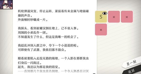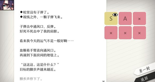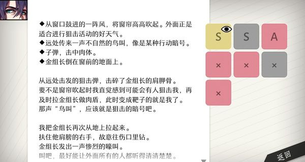 A级结局:远处传来一声不自然的鸟鸣——子弹——从窗外吹进的一阵风——金组长。