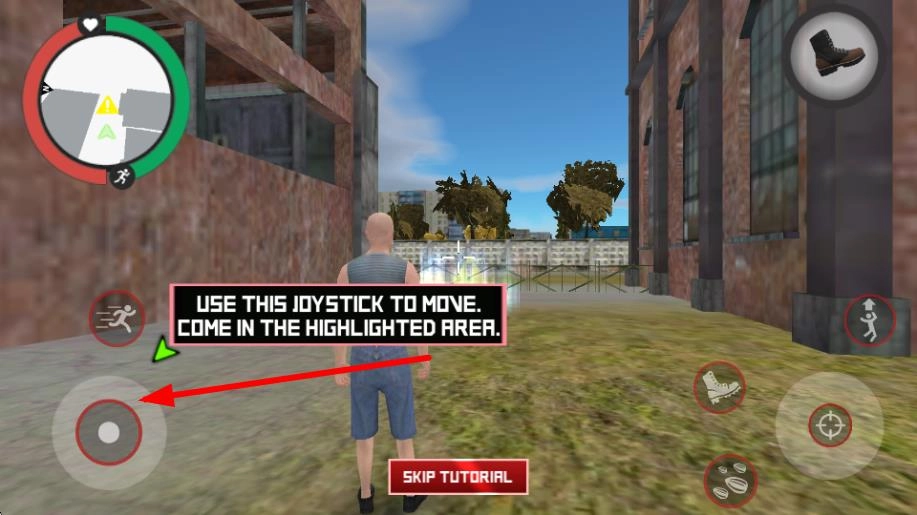 利用左侧的操纵杆来控制角色在游戏场景中的移动,并按照指示进入高亮区域来完成各项任务。