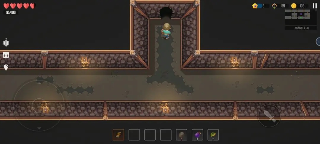 3、使用魔杖、弓箭、长矛、暗器等武器消灭魔物,升级装备。