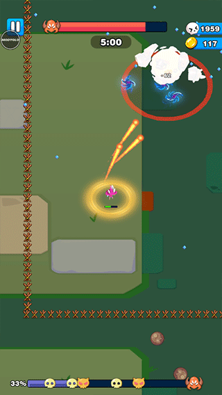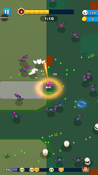 孤独的幸存者是一款卡通风格的幸存者类游戏,单手操控萌萌哒的角色走位闪避,然后朝前方不断发射剑气。就像萌化版的吸血鬼幸存者一样,玩家需要独自一人面对成群的怪物并与其战斗,通过学习技能来击杀蜂拥而至的敌人,每击败一名敌人都有几率掉落经验、宝箱等,拾取可以提升自己的等级,以此来学习更加厉害的技能。但需要注意的是,随着游戏进程的推进,敌人的数量会越来越多,还有多种强大的boss出现,因此你需要控制好自己走位,以免被敌人击杀导致游戏的失败。孤独的幸存者游戏拥有柔和卡通的画风,没有过多复杂的操作,各种技能搭配组合起来产生的效果无比解压畅快!喜欢的朋友快快下载吧。