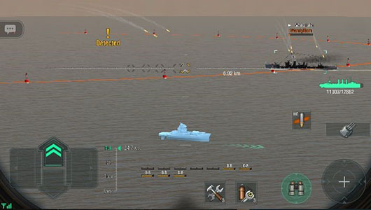 战舰的移动按键在屏幕左下角,上下按钮调整一共有3档的速度档位,控制战舰的前进及后退;左右按钮控制战舰的左右方向,操作起来相当简单,非常容易上手。