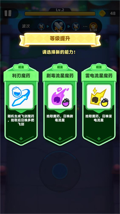 -升级与强化:每击败一波怪物,你将获得经验,升级后可选择不同的技能,强化你的战斗力。不断提升,成为最强的弓箭手!