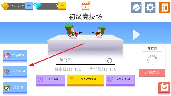 1、启动游戏后,点击主界面上的5v5对战模式,就能与其他玩家展开对决;