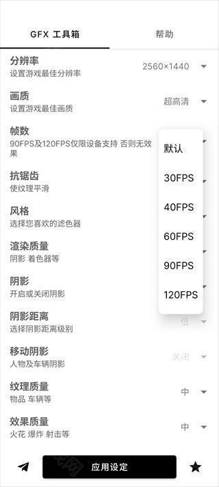 4、在帧数方面,GFX Tool也可以让你轻松得到120帧的上限,只需要选择“120FPS”即可。