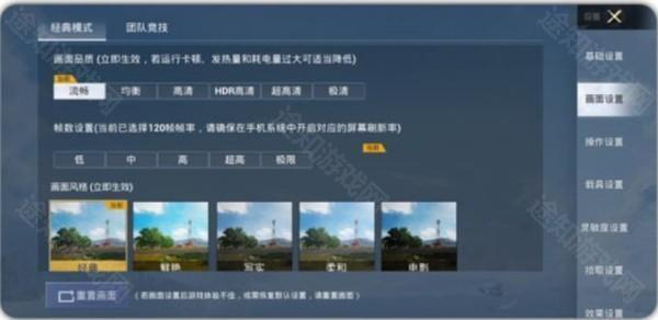 第二步:我们进入软件以后,选择你想要修改的画质。正常打游戏的话,推荐:流畅+120帧率。