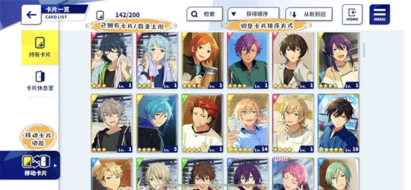 卡片移动功能:因【持有卡片】存在限制,所以我们可以通过此功能来将卡片转移到【卡片休息室】中或将其从【休息室】中转出。让卡片列表有更多的空间。