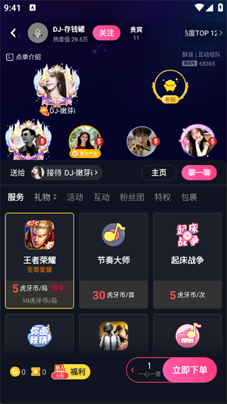 酥音派对App是由虎牙出品的一款互动娱乐与电竞陪玩平台,在小鹿电竞基础上全面升级,集“玩游戏、听音乐、聊情感”于一体,打造轻松有趣的线上陪伴空间。平台覆盖LOL、王者荣耀、和平精英等主流电竞项目,用户可轻松找到专业陪练大神畅快上分;同时,酥……