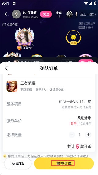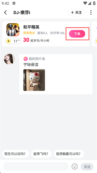 5、你也可以搜索个人进入私聊页面直接下单进行对接