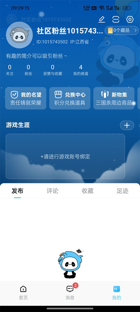 1、咸话社区内右下角点击“我的”类别,点击游戏账号绑定/已绑定账号点击可换绑。