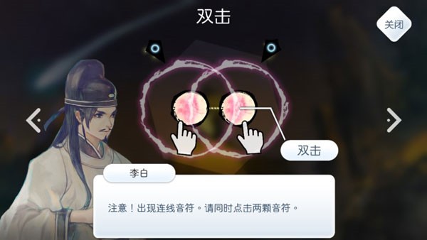 6、连击:当连续的提示点飞到音符上时,连续点击音符。
