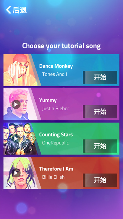 完成教程阶段的学习后,你将拥有更多歌曲的选择,包括一些热门的中文曲目。