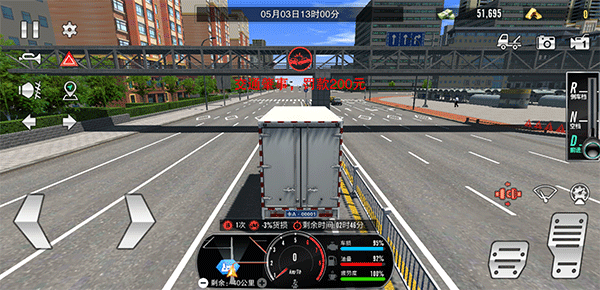 5、在运输过程中,玩家通过下方地图导航至运输终点,但在运输途中注意系好安全带(安全带时刹车上方的红色图标),并且不要违反交通规则、以及撞车等,不然不仅会返款扣钱,还会造成货损;