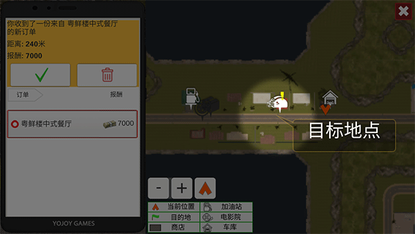 1、进入游戏后,用手指点击屏幕查看待配送的订单,点击绿色“√”图标即可接受订单!