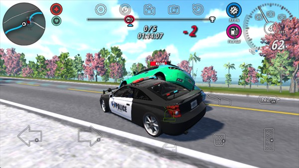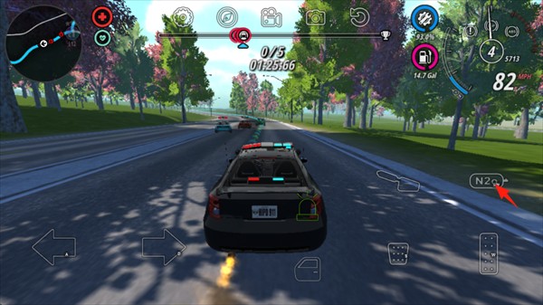 11、当与罪犯距离较远时,可以点击屏幕右侧的“N2o”图标,使用氮气加速。
