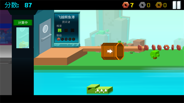 2、飞跃鳄鱼潭:玩家需要掌握发射筒的角度变化,点击屏幕将小怪物射向终点。