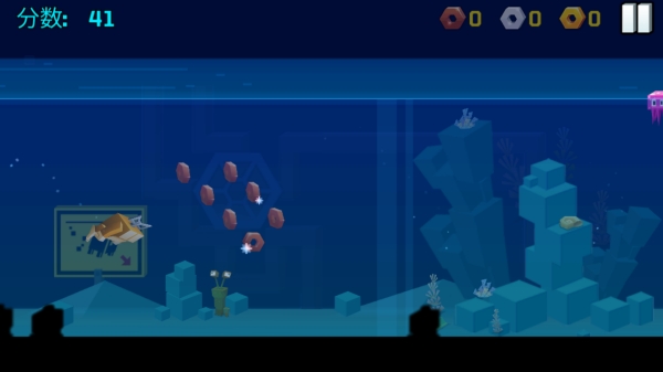 6、水族馆大冒险:通过点击屏幕控制角色下潜,躲避障碍水母。