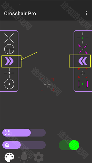 3、当然软件内的准星类型远不止展示的这些,可以点击下图所示的箭头按钮查看更多的准星类型。