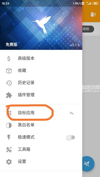 2、然后点击设置-目标应用-添加轻颜相机(为了不抓取其他多余的app的数据,方便找包)